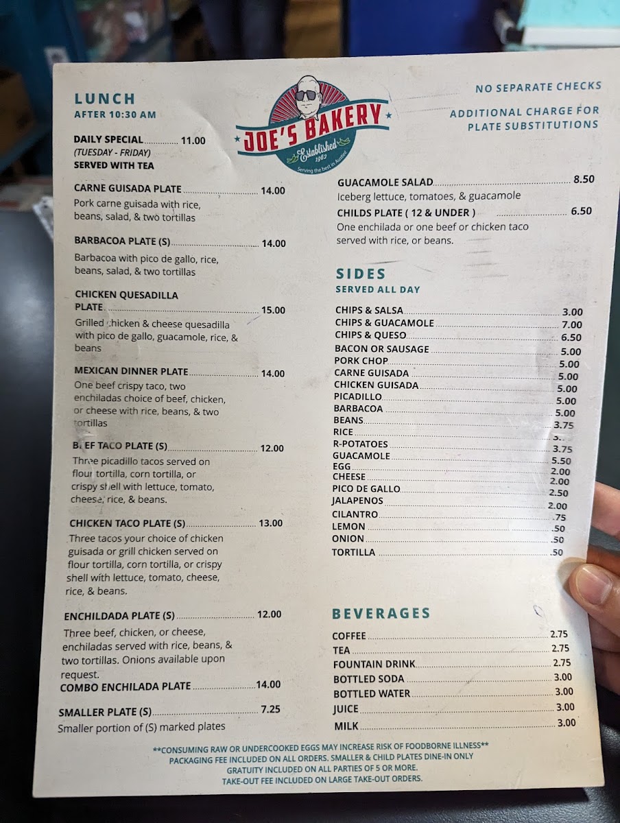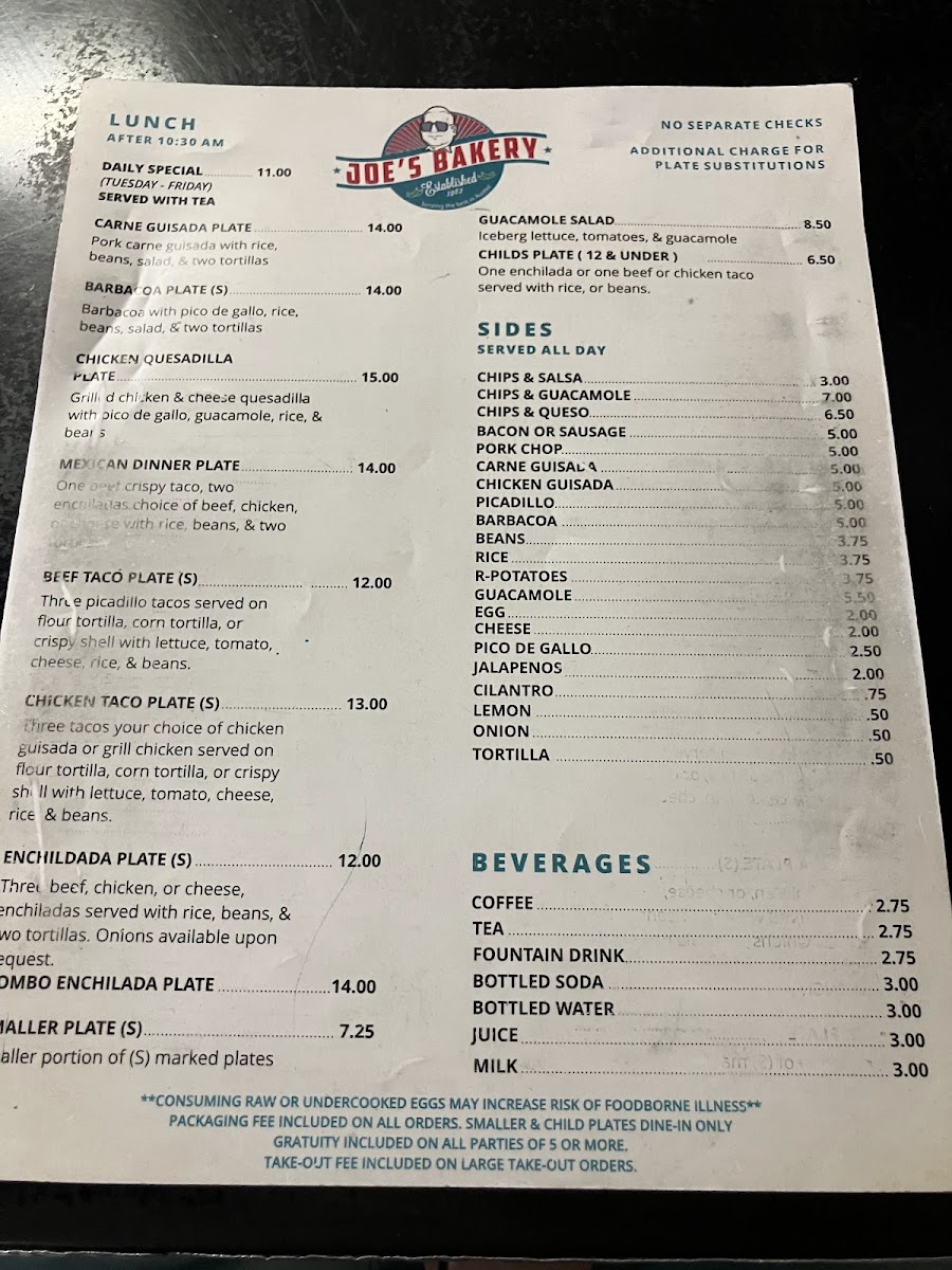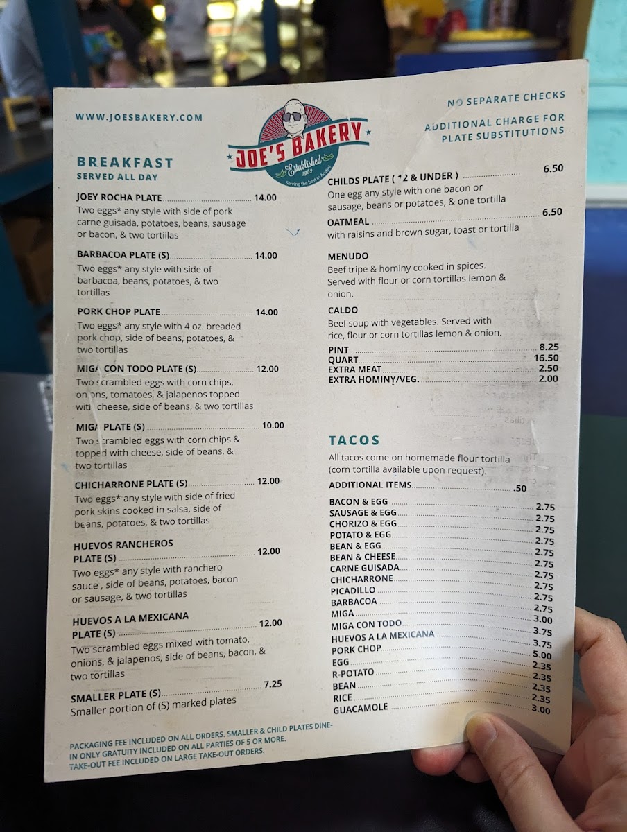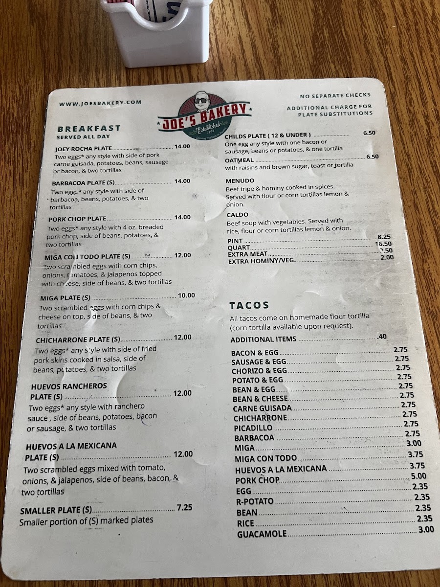 Indulge in a vibrant array of delectable offerings, starting with their mouthwatering breakfast plates. The Joey Rocha Plate features perfectly cooked eggs paired with succulent pork carne guisada, crispy potatoes, and soft tortillas, all for just US$14.00. For a taste of the traditional, don’t miss the Baracoa Plate, which tantalizes your taste buds with seasoned barbacoa and hearty sides. Other crowd favorites include the Pork Chop Plate and Migas Con Todo Plate, making it clear why Joe’s is known for its bold flavors and generous portions.